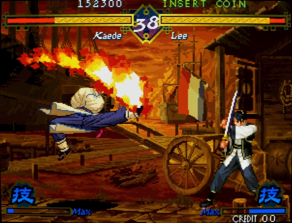 periodo Bakumatsu que se recuerdan. Lejos de la monotonía y escasez de los escenarios del entonces recién parido The King of Fighters ‘97, los fondos de Gekka no