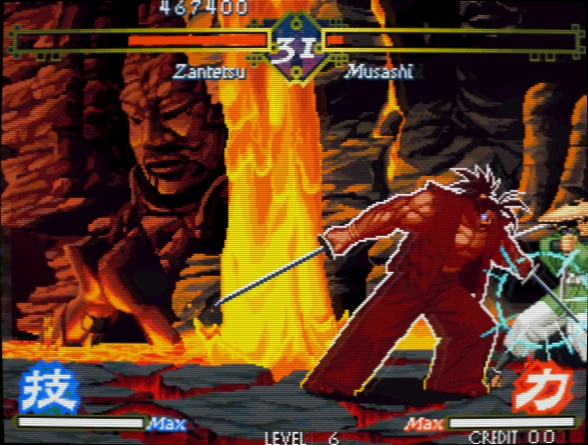 anime no es coto privado de Capcom. La sorprendente animación de los personajes junto a su impecable diseño con colores semi-planos y en base a las premisas del cómic japonés puramente comercial, recuerdan más a los títulos de la compañía rival que a cualquier otro programa del catálogo de Neo-Geo. Incluso la propia mecánica del juego tiene más puntos en común con Street Fighter III que con Samurai Spirits, sin ir más lejos. El sello de SNK, en cualquier caso, sigue estando presente: